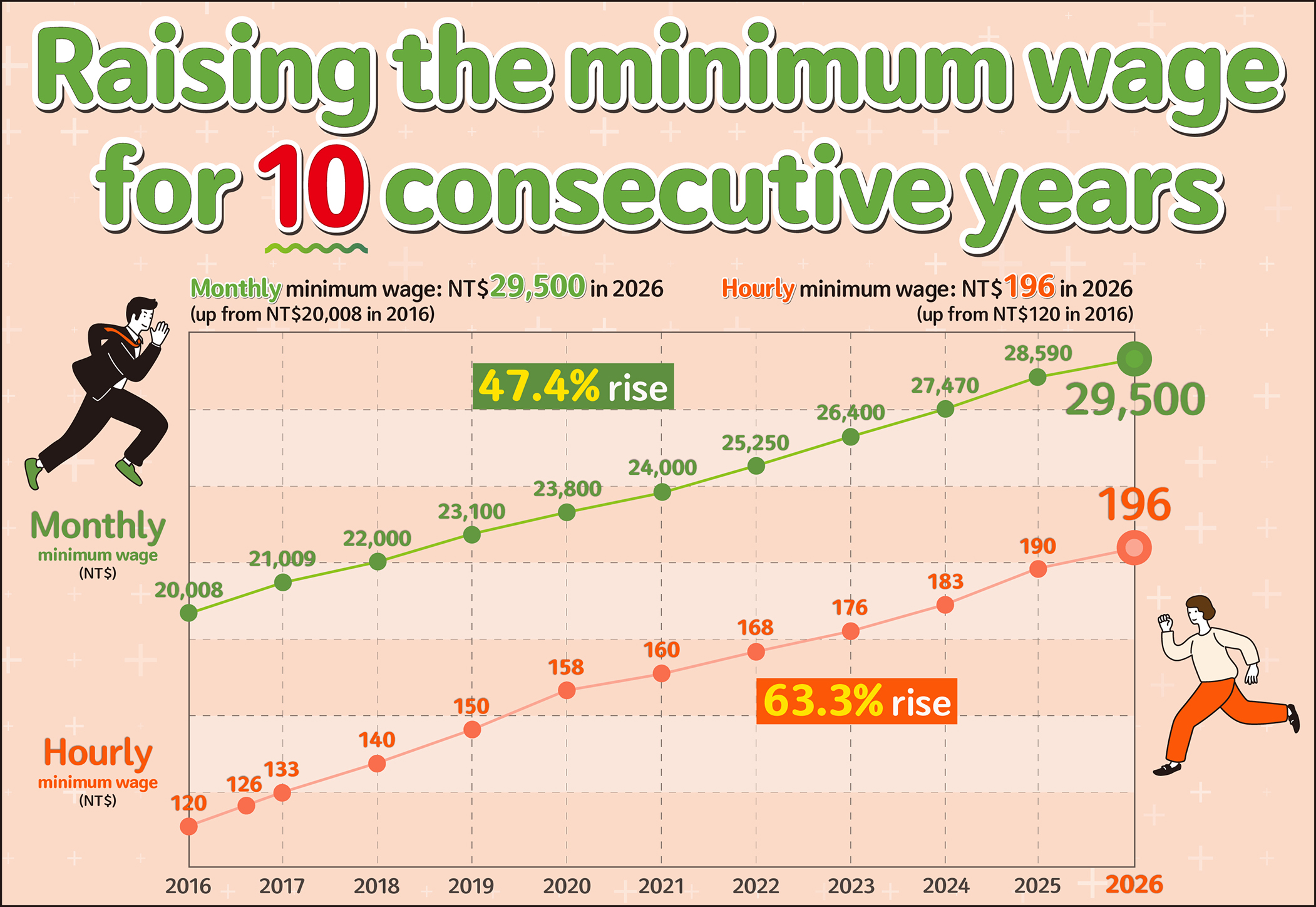- 40 Raising the minimum wage for 10 consecutive years